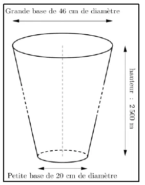 On calcule le volume d’un tronc de cône grâce à la formule suivante :