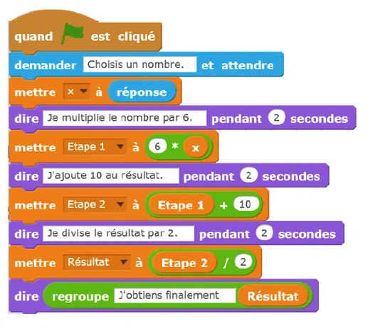 Vérifier que ce qui est dit à la fin est : « J’obtiens finalement 20 ».