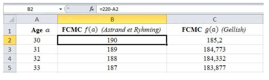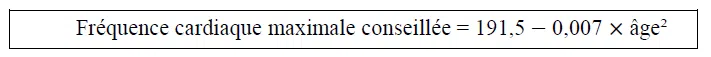 5. Après quelques recherches, Denis trouve une autre formule permettant d’obtenir sa FCMC de façon plus précise. Si désigne l’âge d’un individu, sa FCMC peut être calculée à l’aide de la formule de Gellish :