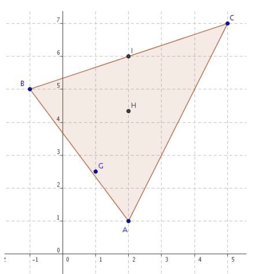 1.Placer les points A(2 ; 1), B( – 1 ; 5), C(5 ; 7) et G(1 ; ).