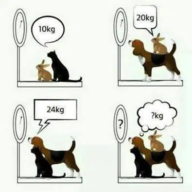 Trouver la masse totale, en kg, du chien avec le lapin et le chat.